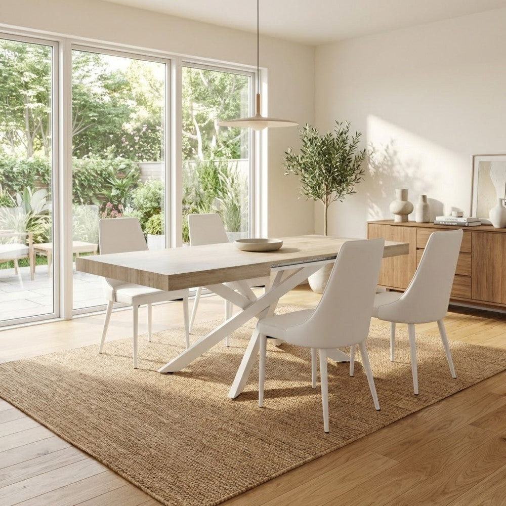 Table d'intérieur extensible 160/200x100 cm avec structure en bois blanc Jessy