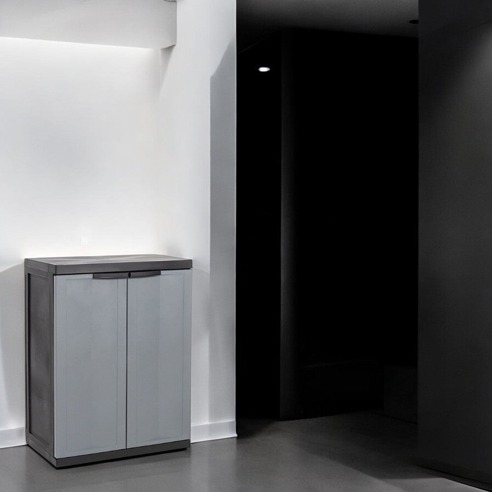 Armoire Basse Avec 2 Portes + 1 Etagère Noir/Gris Art.200Bk - cm.65x37x85h.