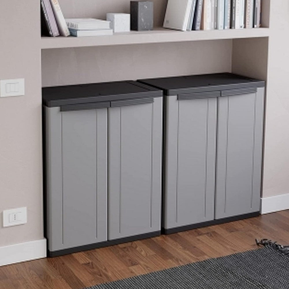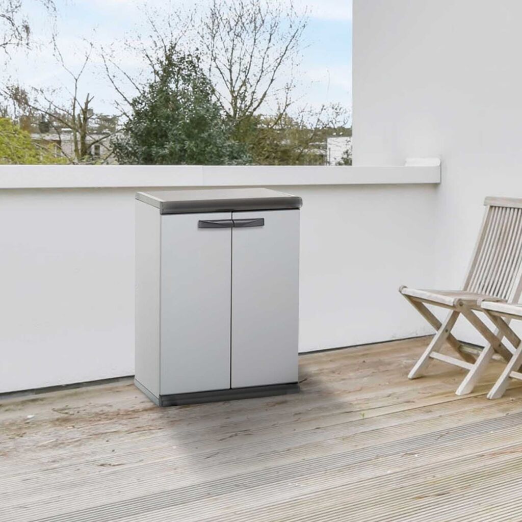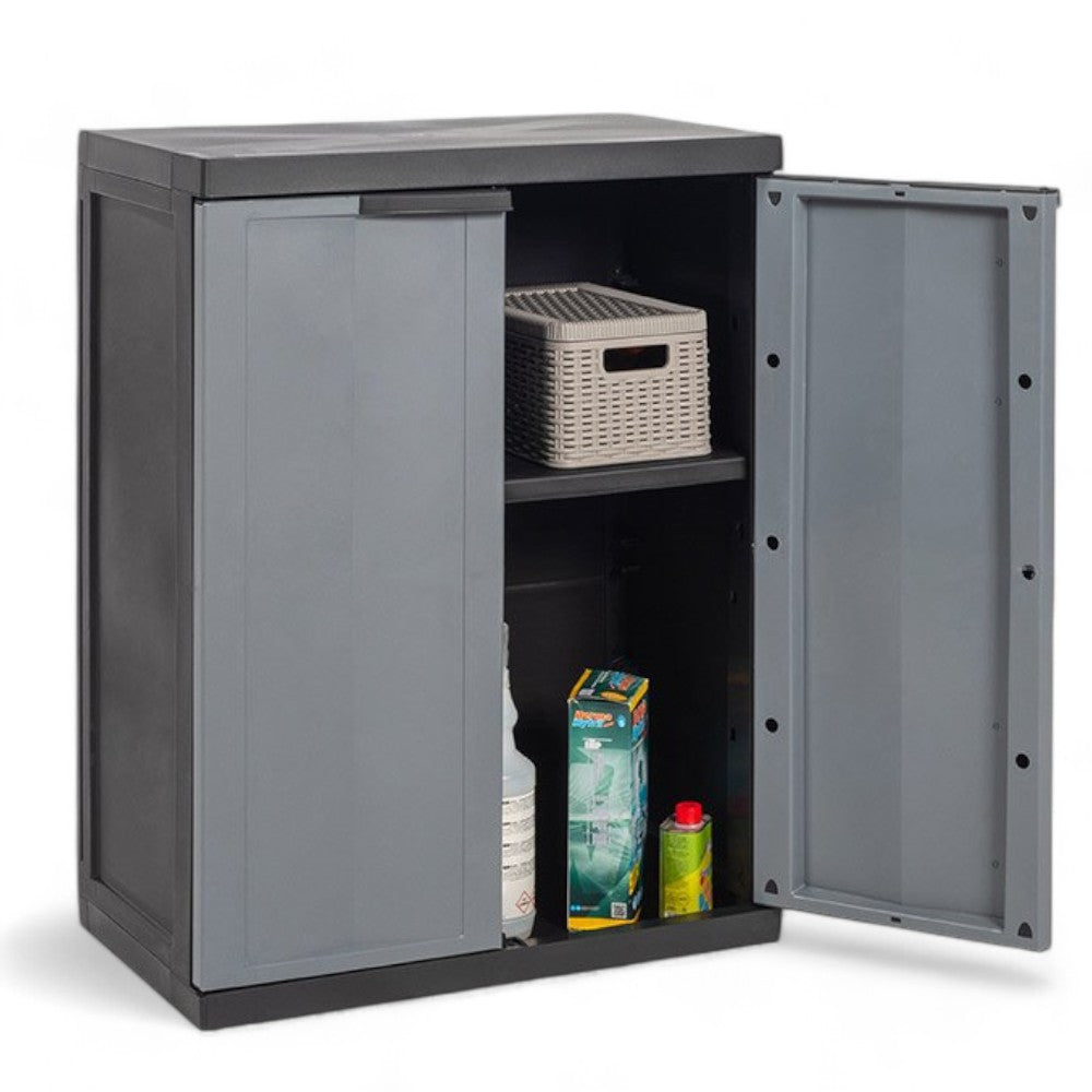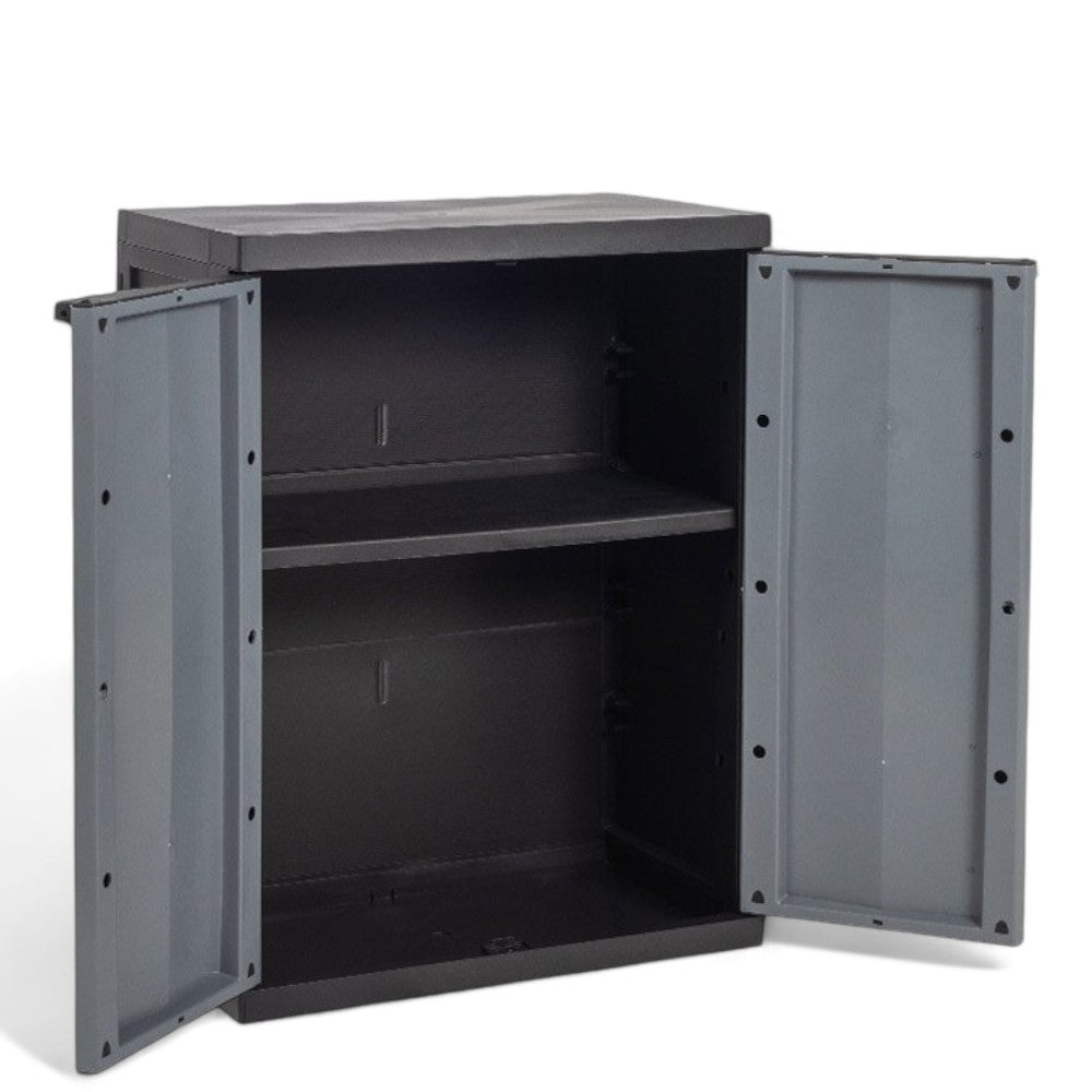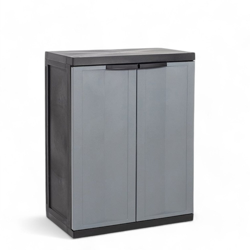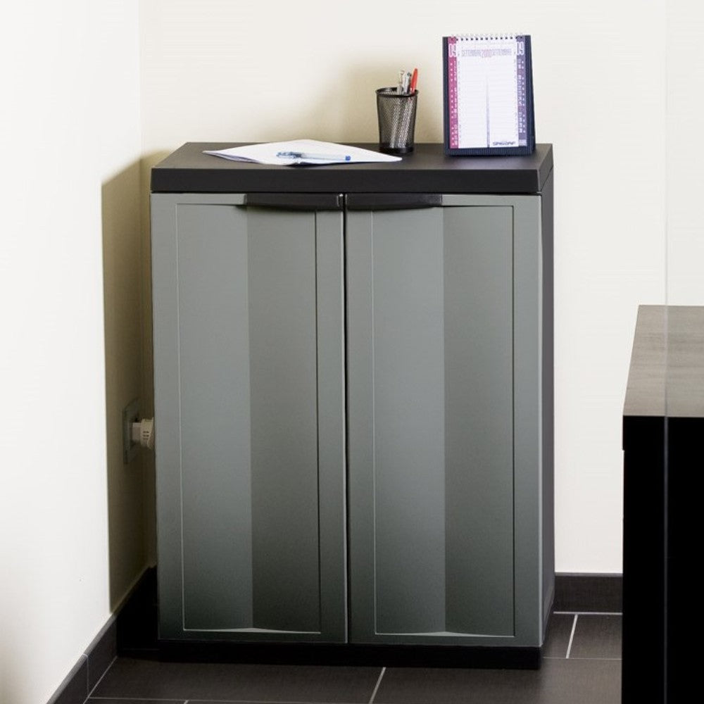 Armoire basse tout étage à deux portes modèle Scik en résine PVC
