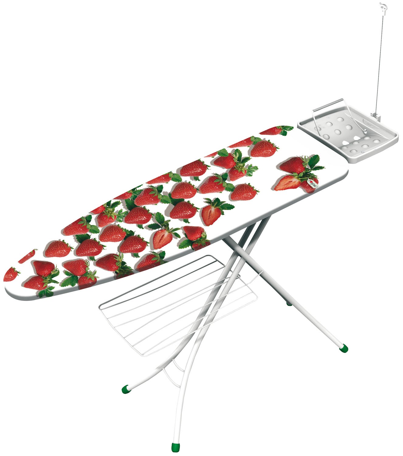 Asse da stiro in acciaio con ripiano a rete 105x30xH89 cm con fermo sicurezza