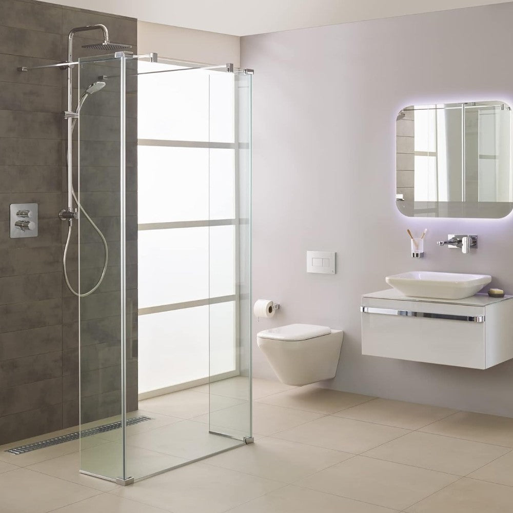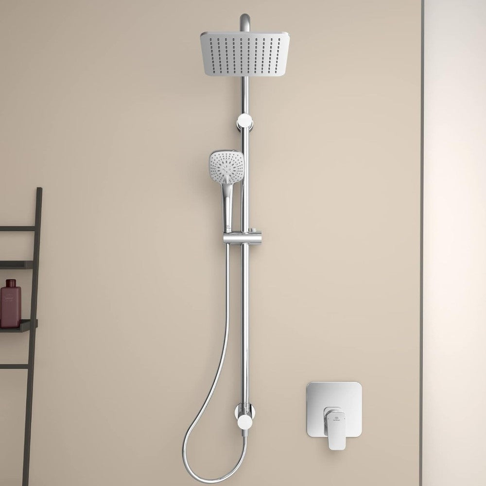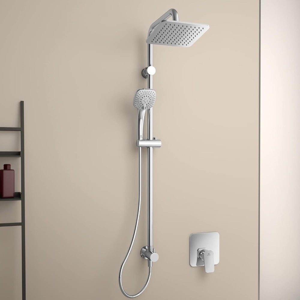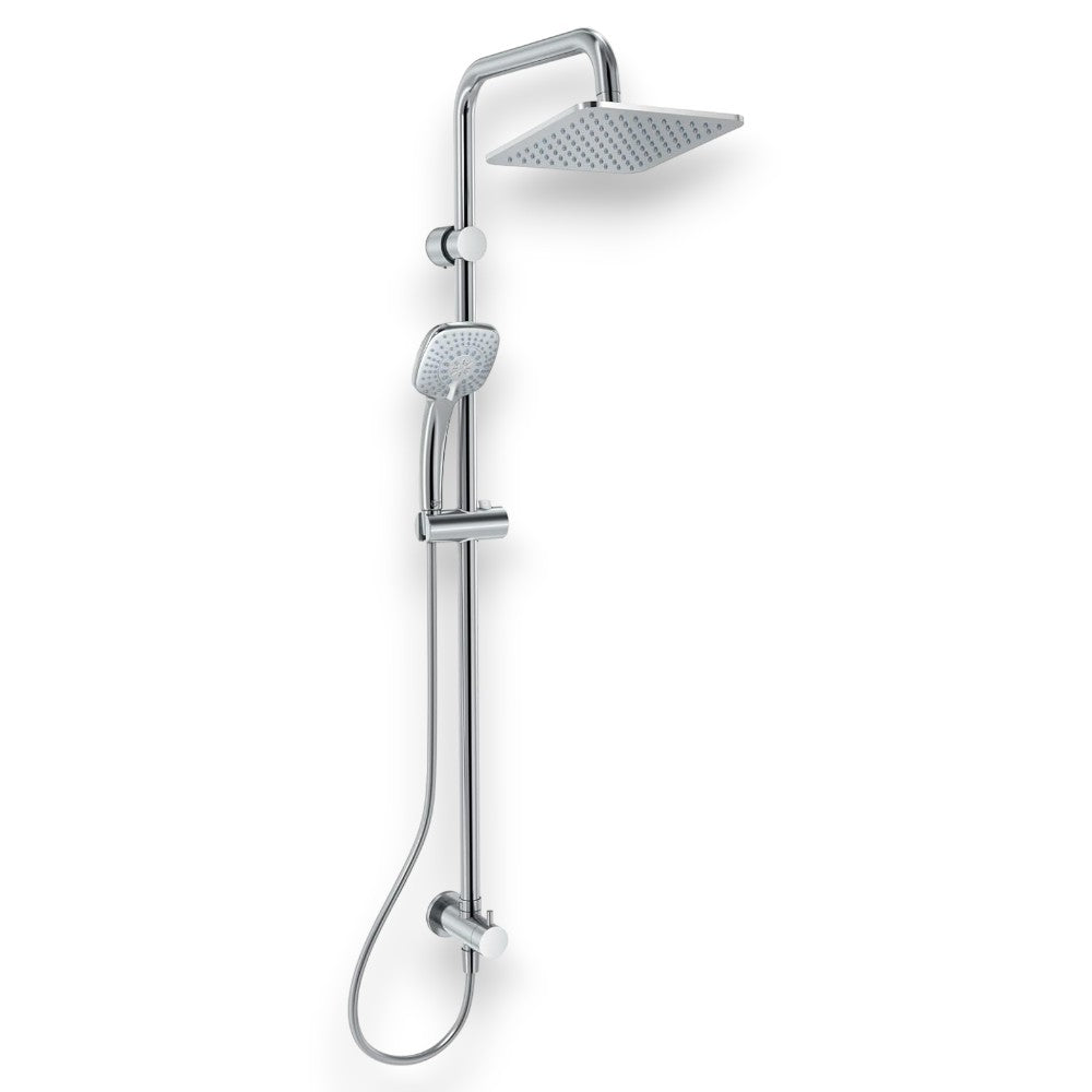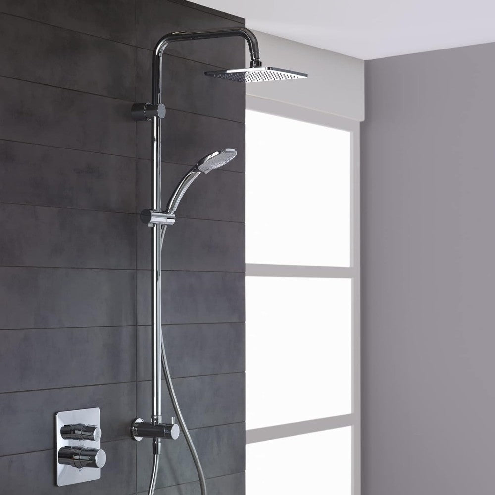 Colonne de douche chromée avec grande pomme de douche et douchette à jet Luxe réglable
