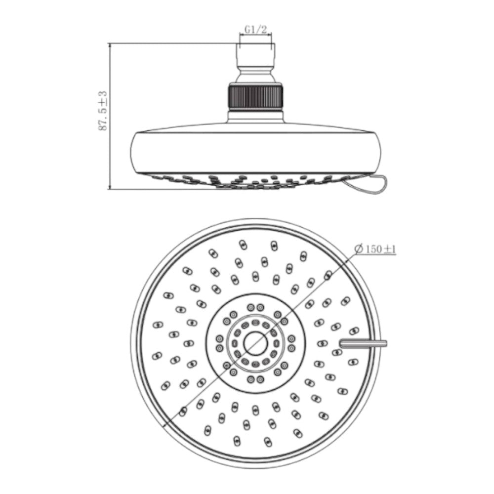 Pomme de douche 1 jet ø 85 mm - 1/2
