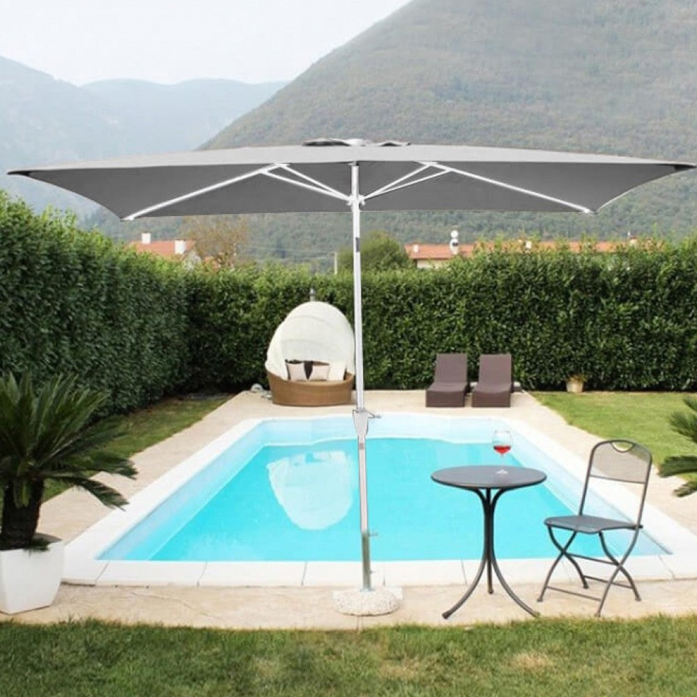 Parasol de jardin 2x3 m avec mât central en acier et ouverture à manivelle Sospiro