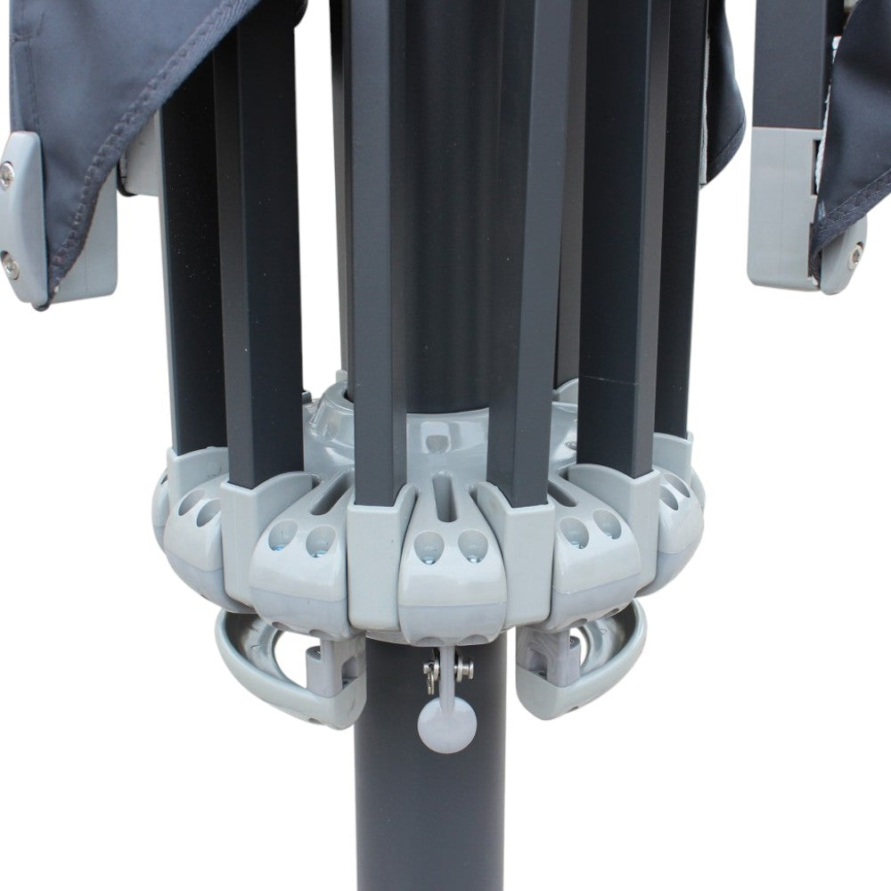 Parasol d'extérieur 3x3 m avec mât central en bois et toile avec bordure Arlequin