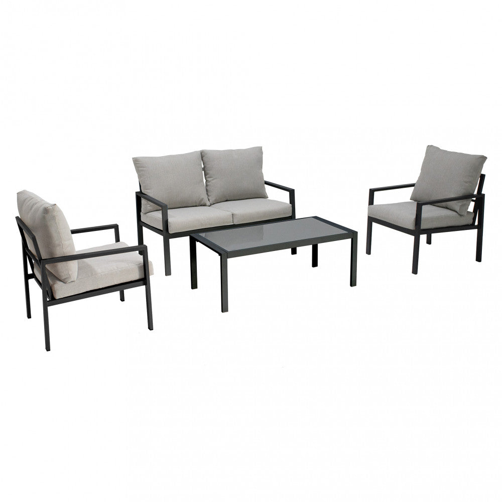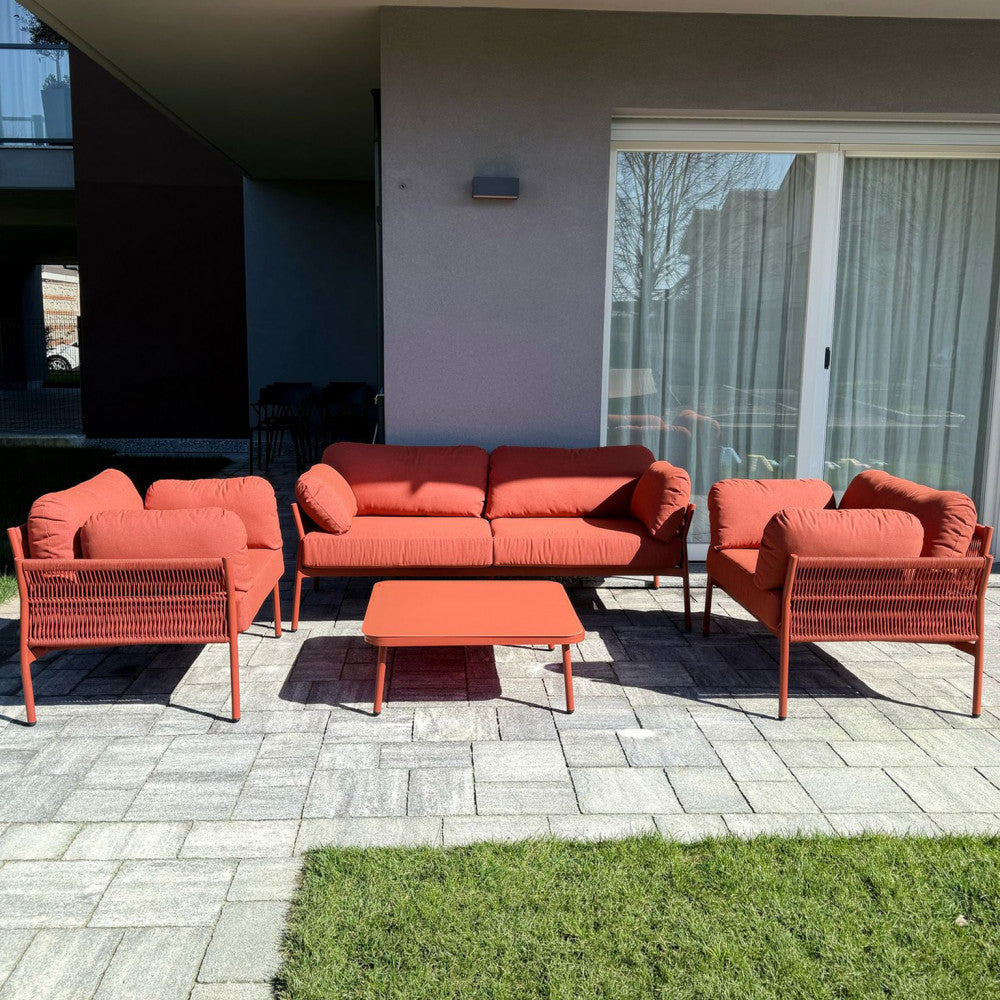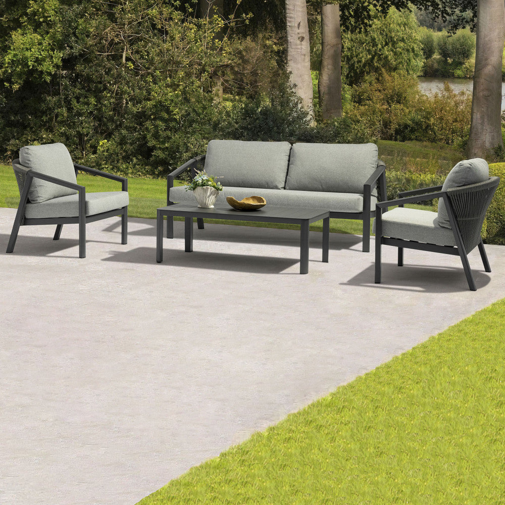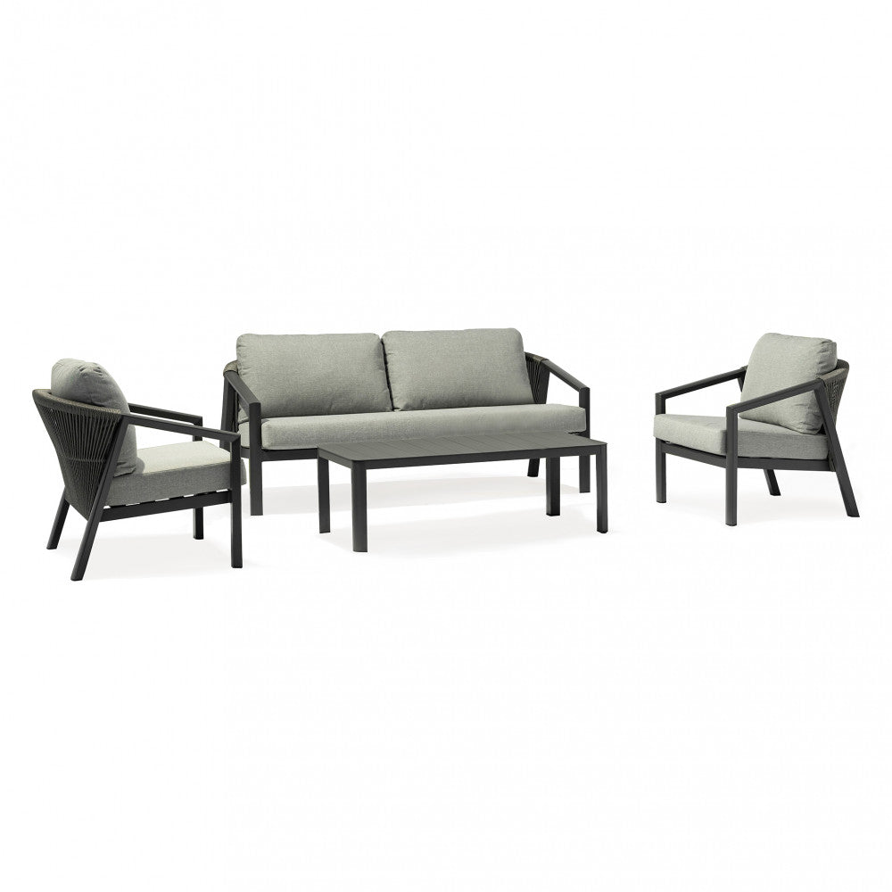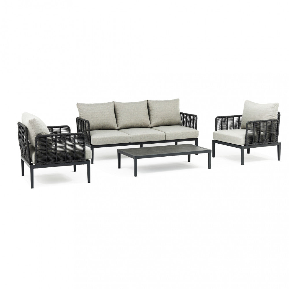 Salon d'extérieur 4 places avec structure aluminium et table effet lattes Aiace