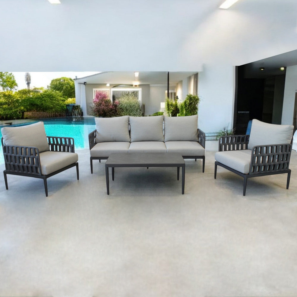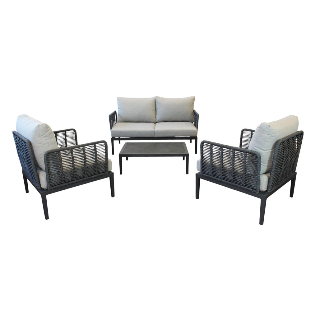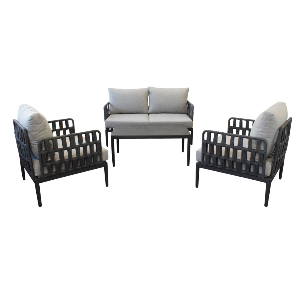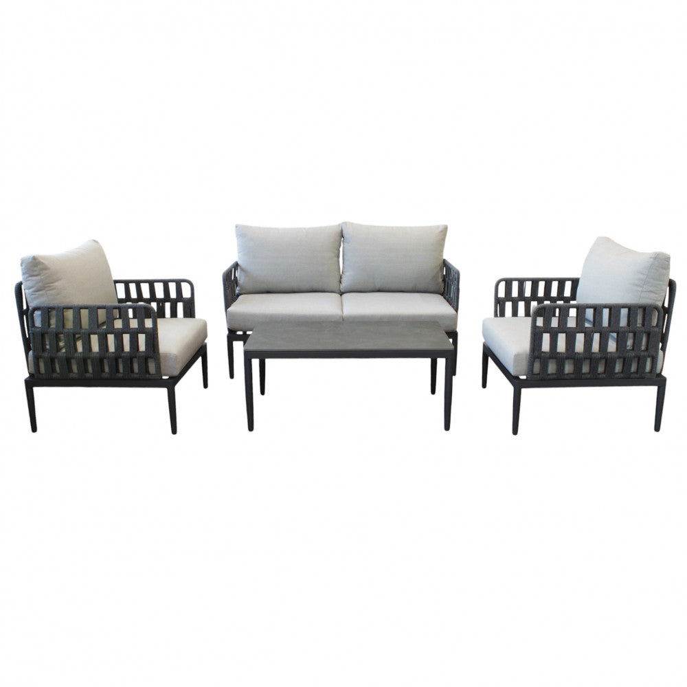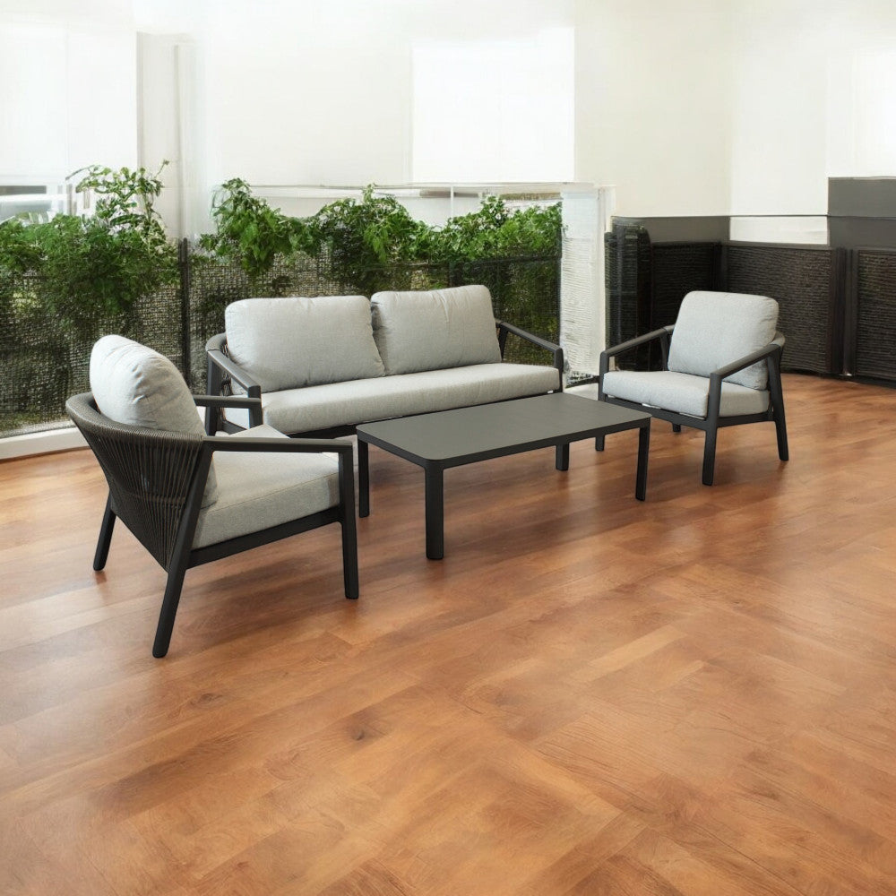 Salon d'extérieur 4 places avec structure aluminium et table effet lattes Aiace