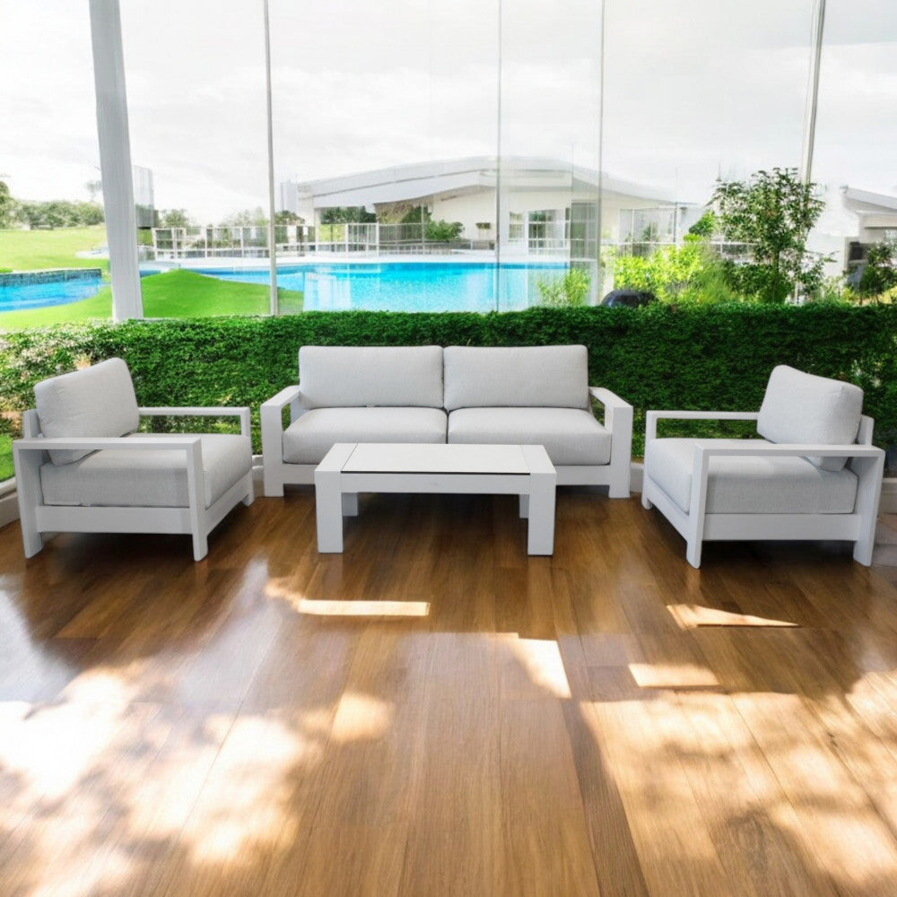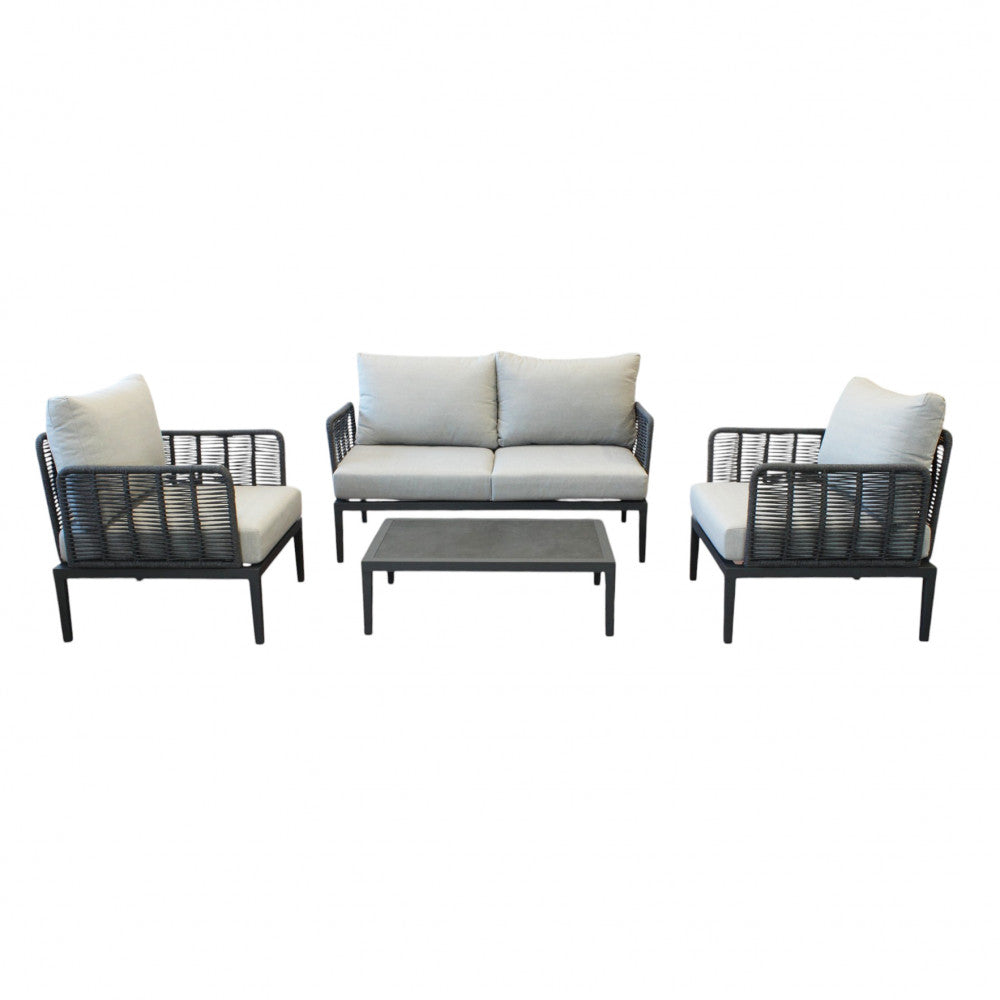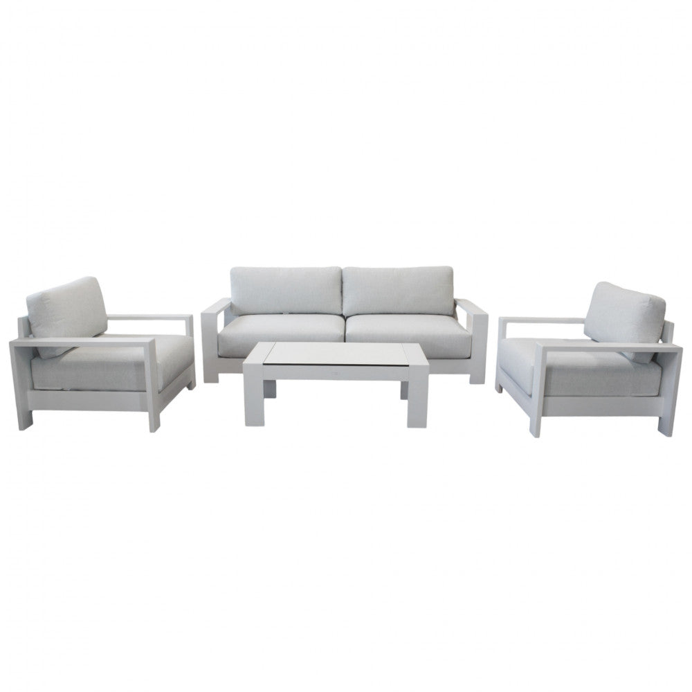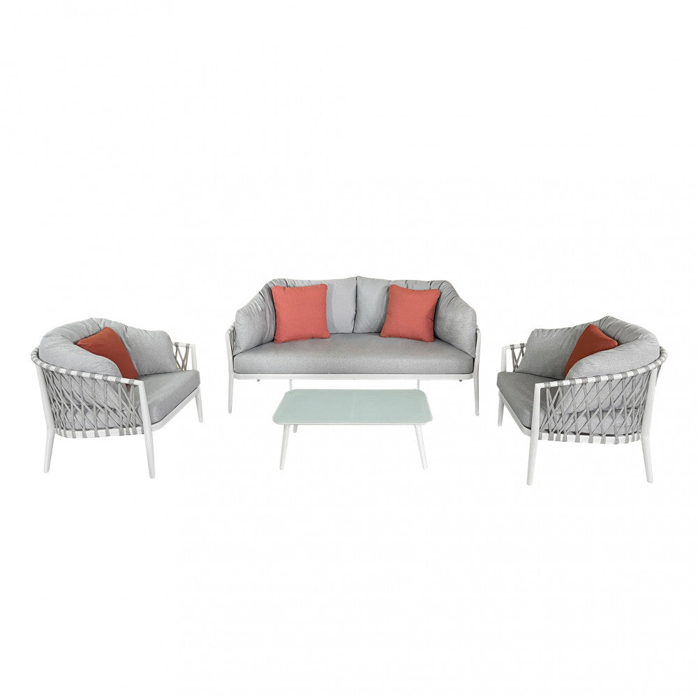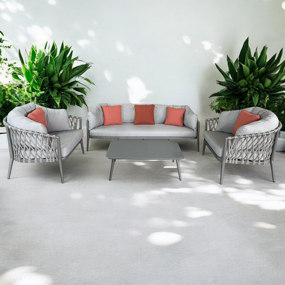 Salon d'extérieur 4 places avec structure aluminium et table effet lattes Aiace