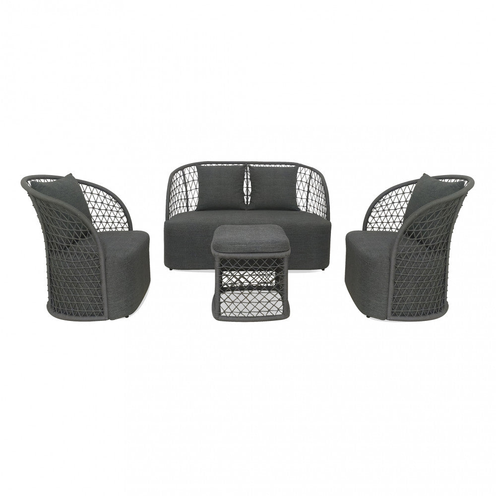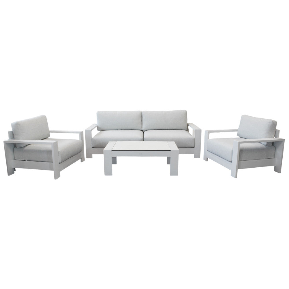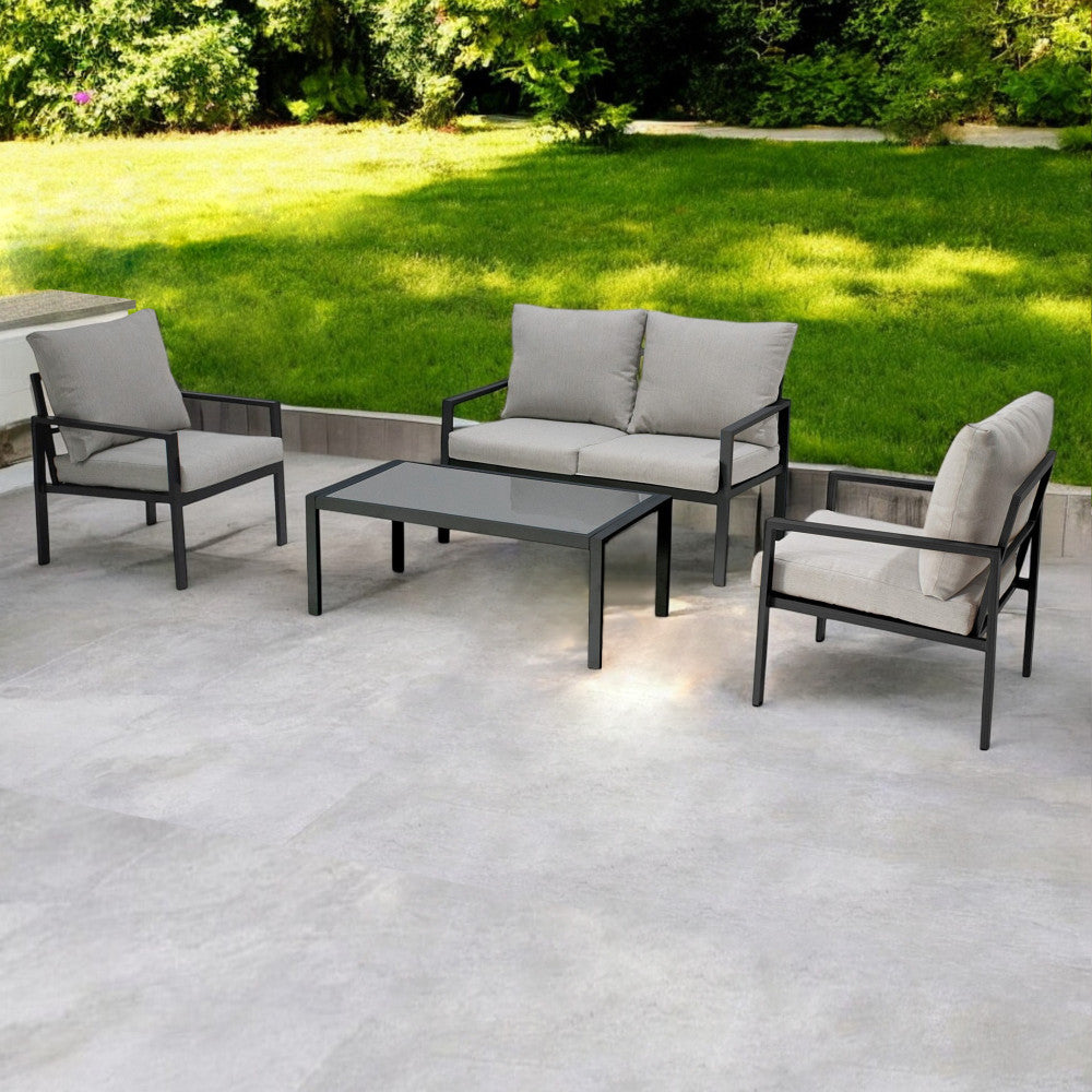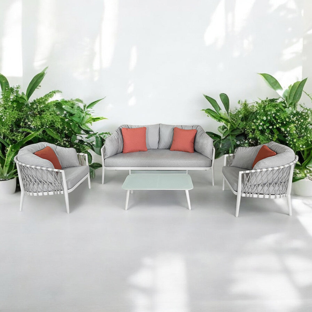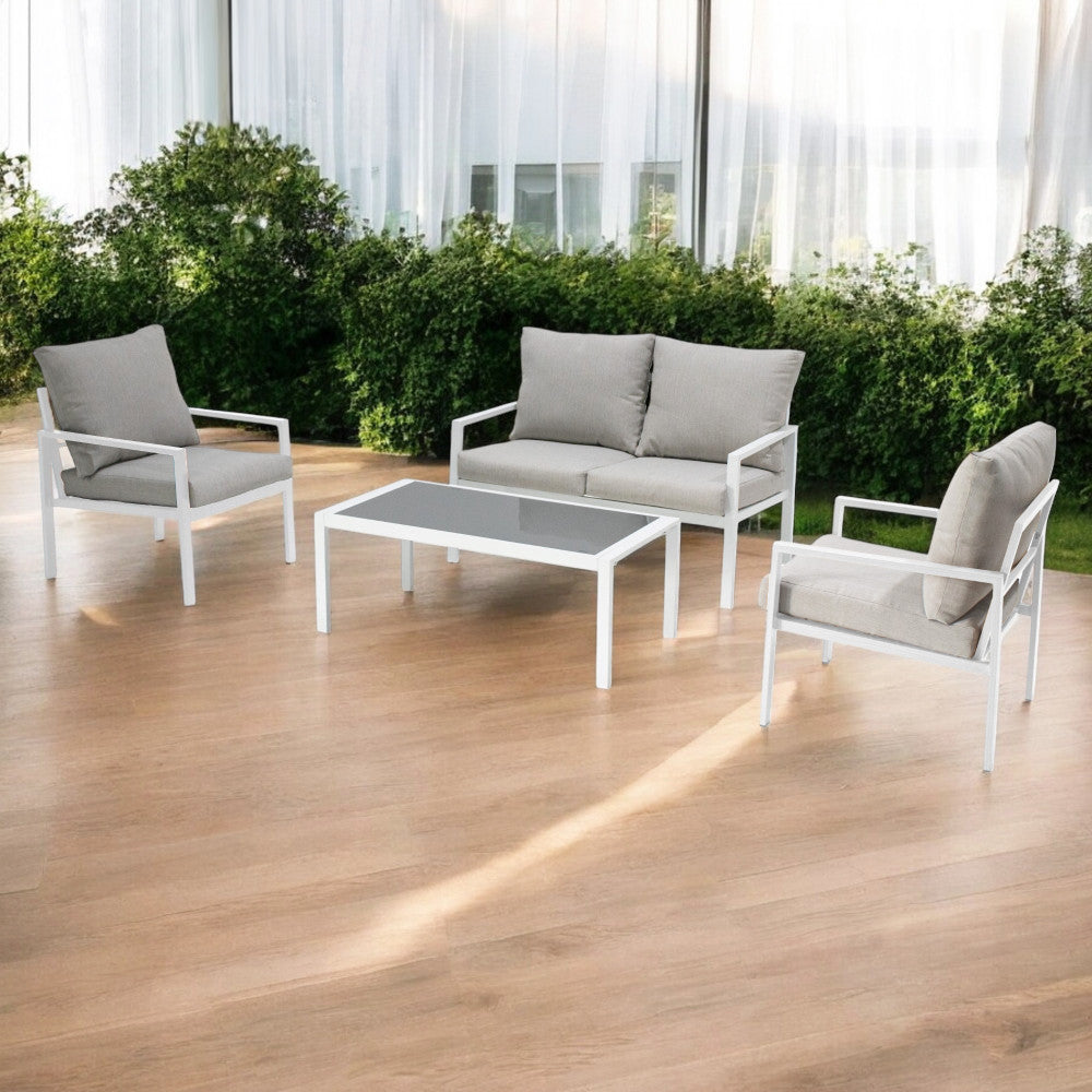 Salon d'extérieur 4 places avec structure aluminium et table effet lattes Aiace