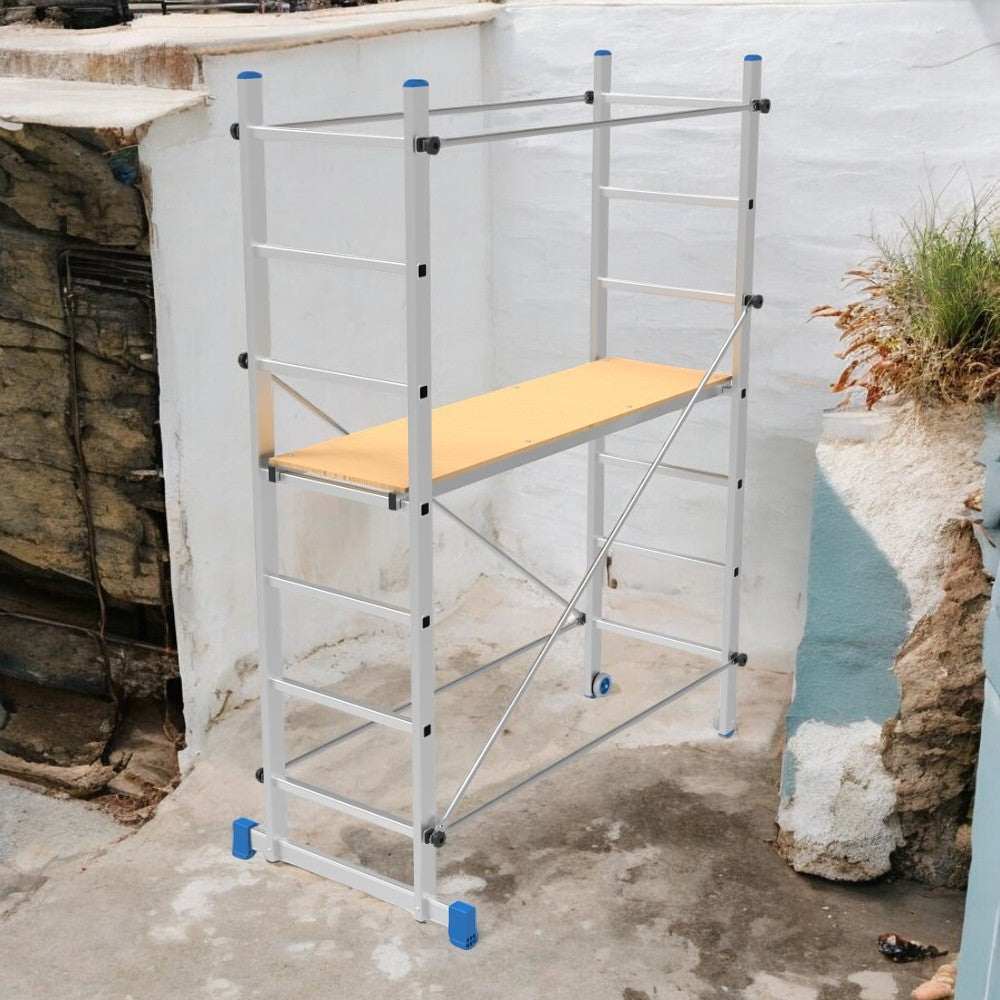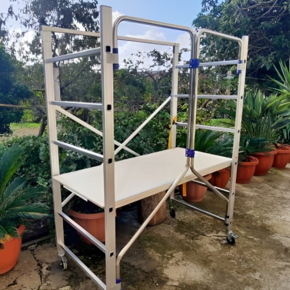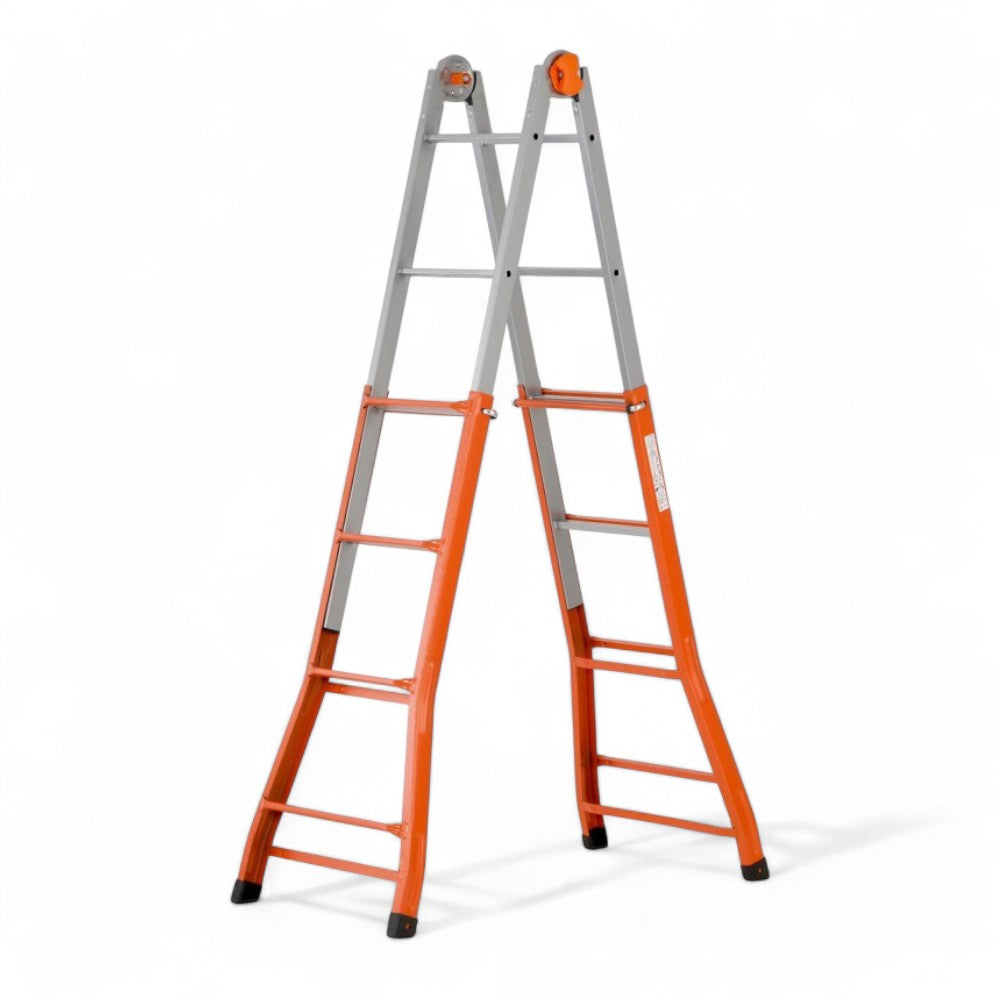 Échelle double escamotable réglable en aluminium avec système de verrouillage