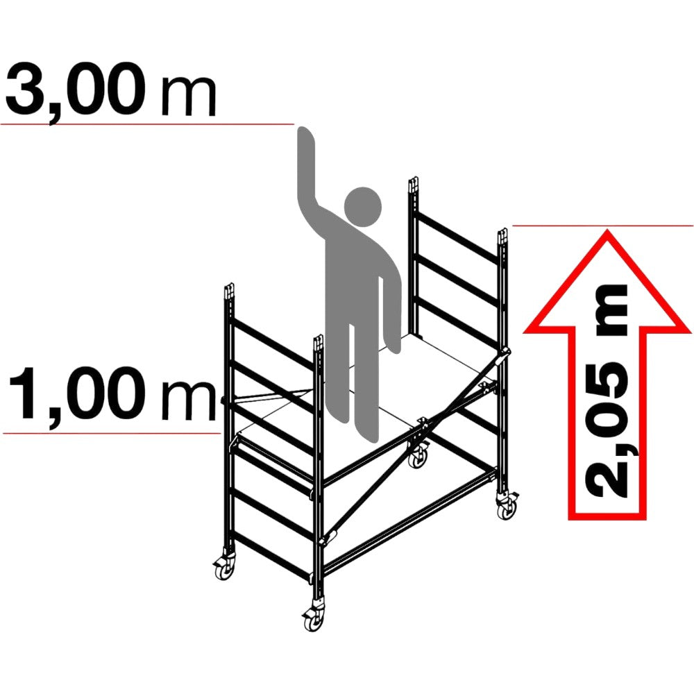 Euroscala Piu' Su Échelle Aluminium En131 - 8 marches cm.59x15x262h (plateforme 182h)...