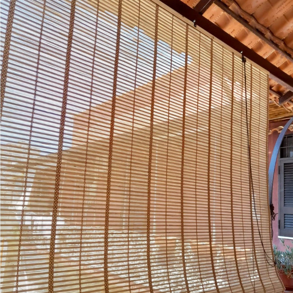 Volet roulant d'intérieur en bambou pour fenêtres à enroulement à poulies